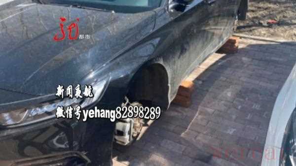 拒张先生介绍:“我一下楼发现车四个轱辘全没了,车辆被架起来了,轮毂和轱辘全没了”。