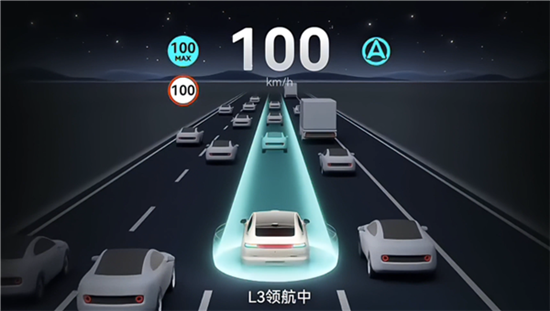 同时还首次公布了L3专属人机交互页面,可以看到该功能启动时,会发出“L3自动驾驶已激活”的语音提醒,开启后界面会显示“L3领航中”。